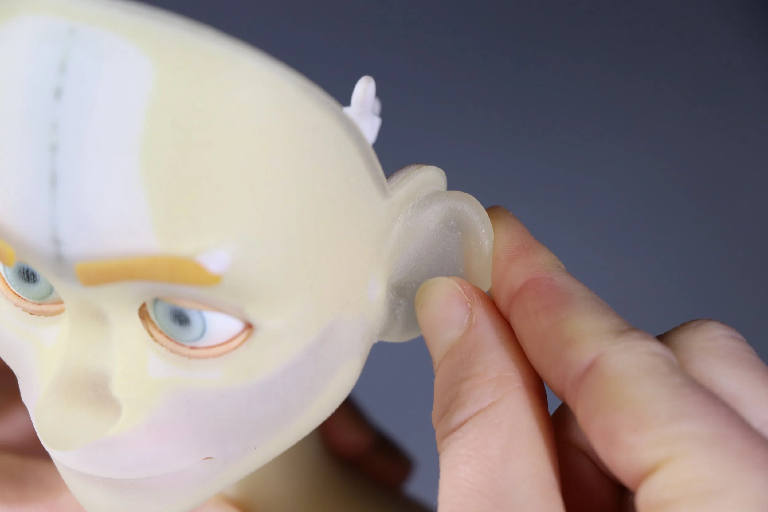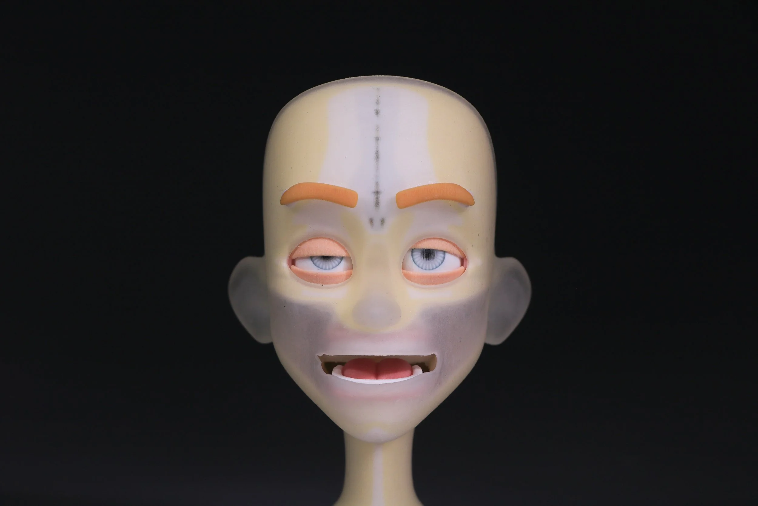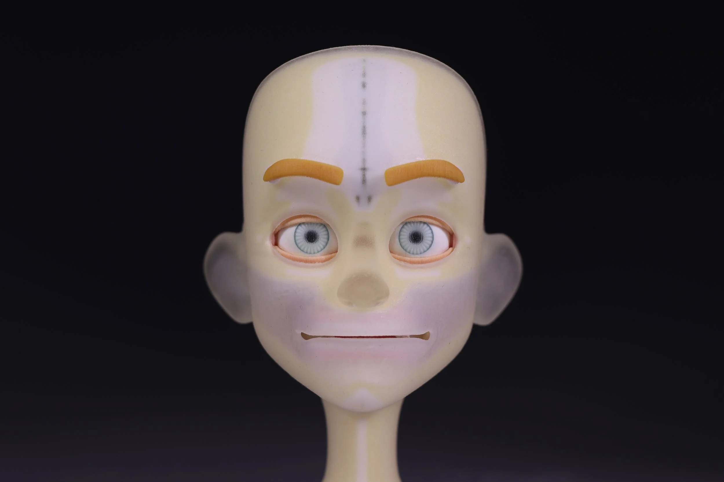Inspiration was drawn from two award-winning Stop-Motion animation studios and combining their differing methods of facial animation. Mackinnon & Saunders’ work in Tim Burton’s Corpse Bride, and Laika Studios’ work on Missing Link. Using the ease/speed of manufacture exploited by Laika’s Stratasys Polyjet 3D printing advancements without needing to print every frame, and using Mackinnon & Saunder’s use of re-posable mechanics without having to meticulously handcraft each puppet.
