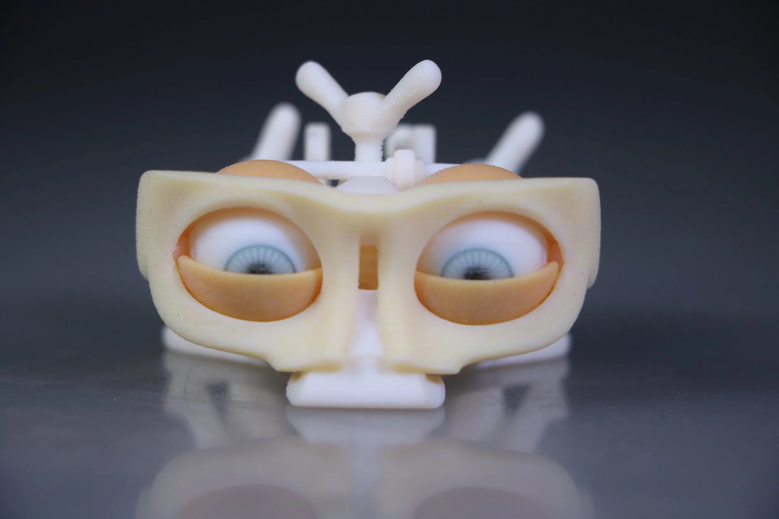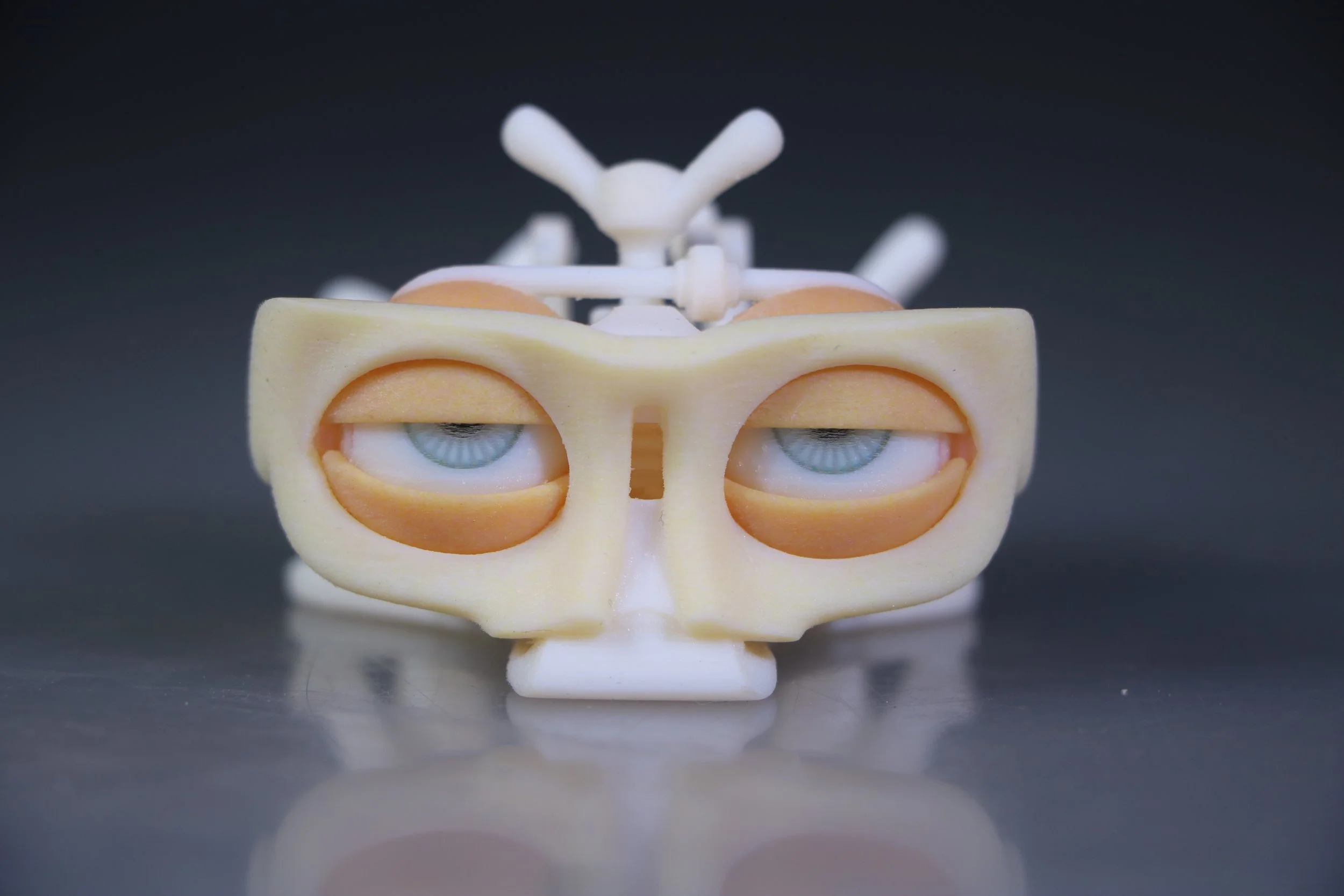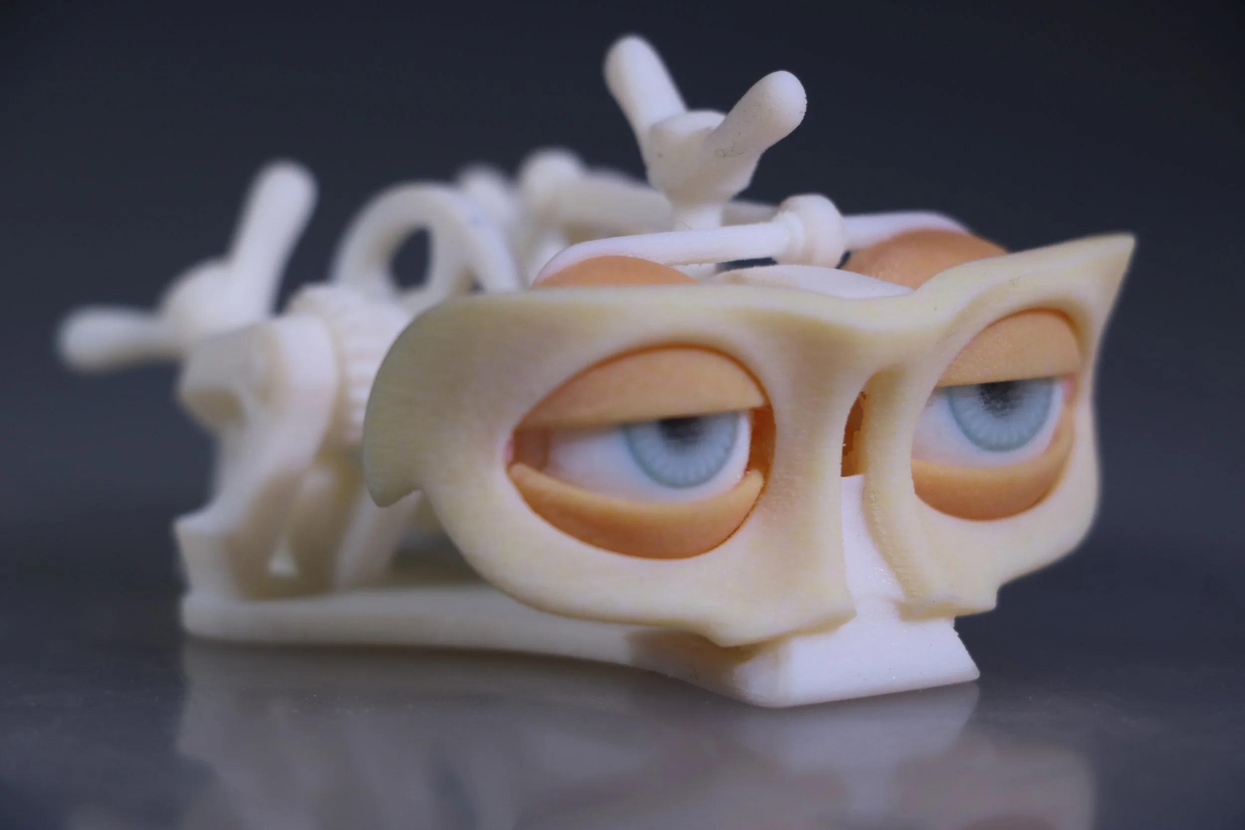 Can something as complex as a mechanically posed Stop-Motion animation puppet head, with variable colour, and part density (flexible face) be 3D printed in a single file without any form of assembly? … Can a single 3D print be brought to life?