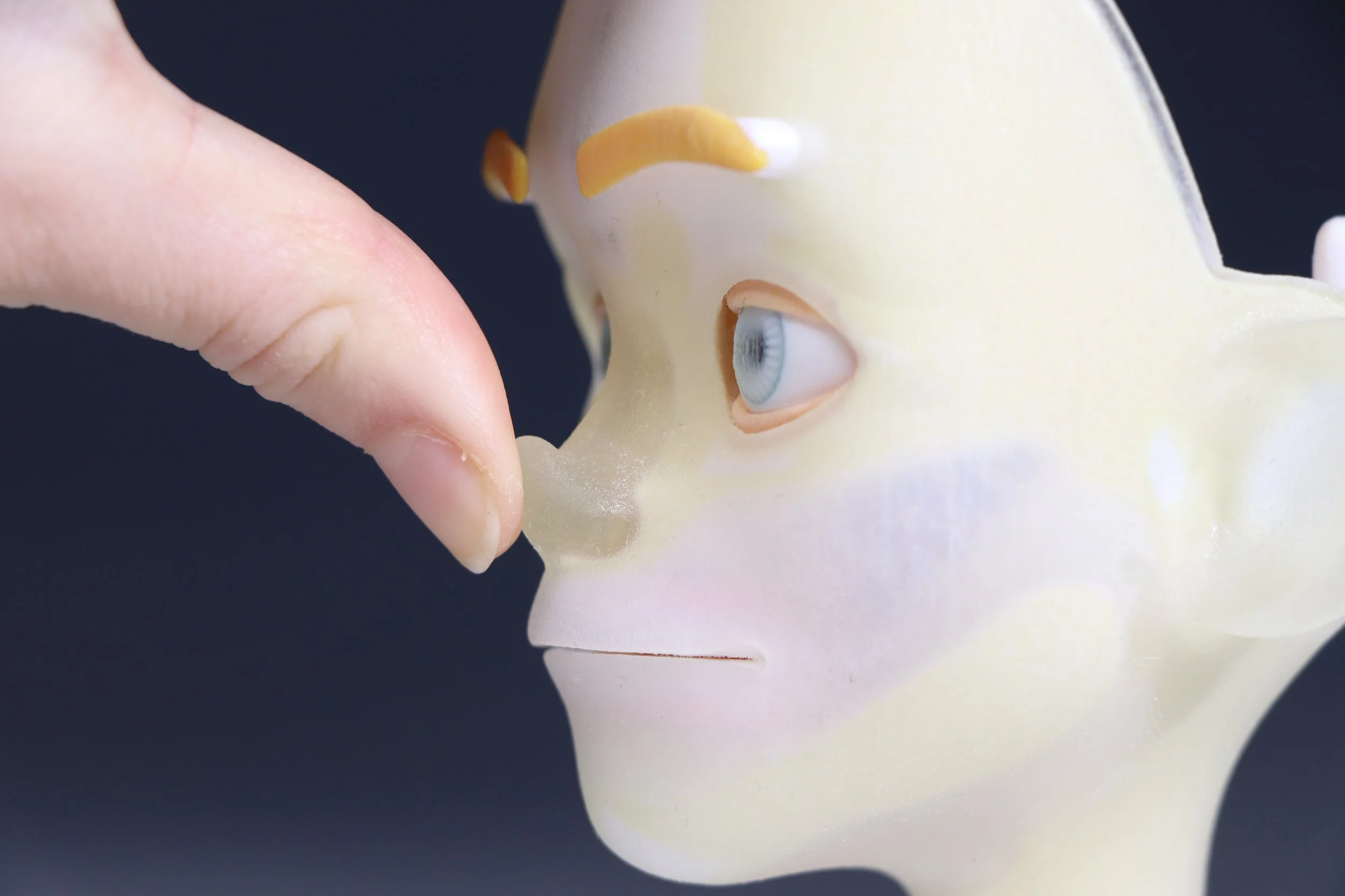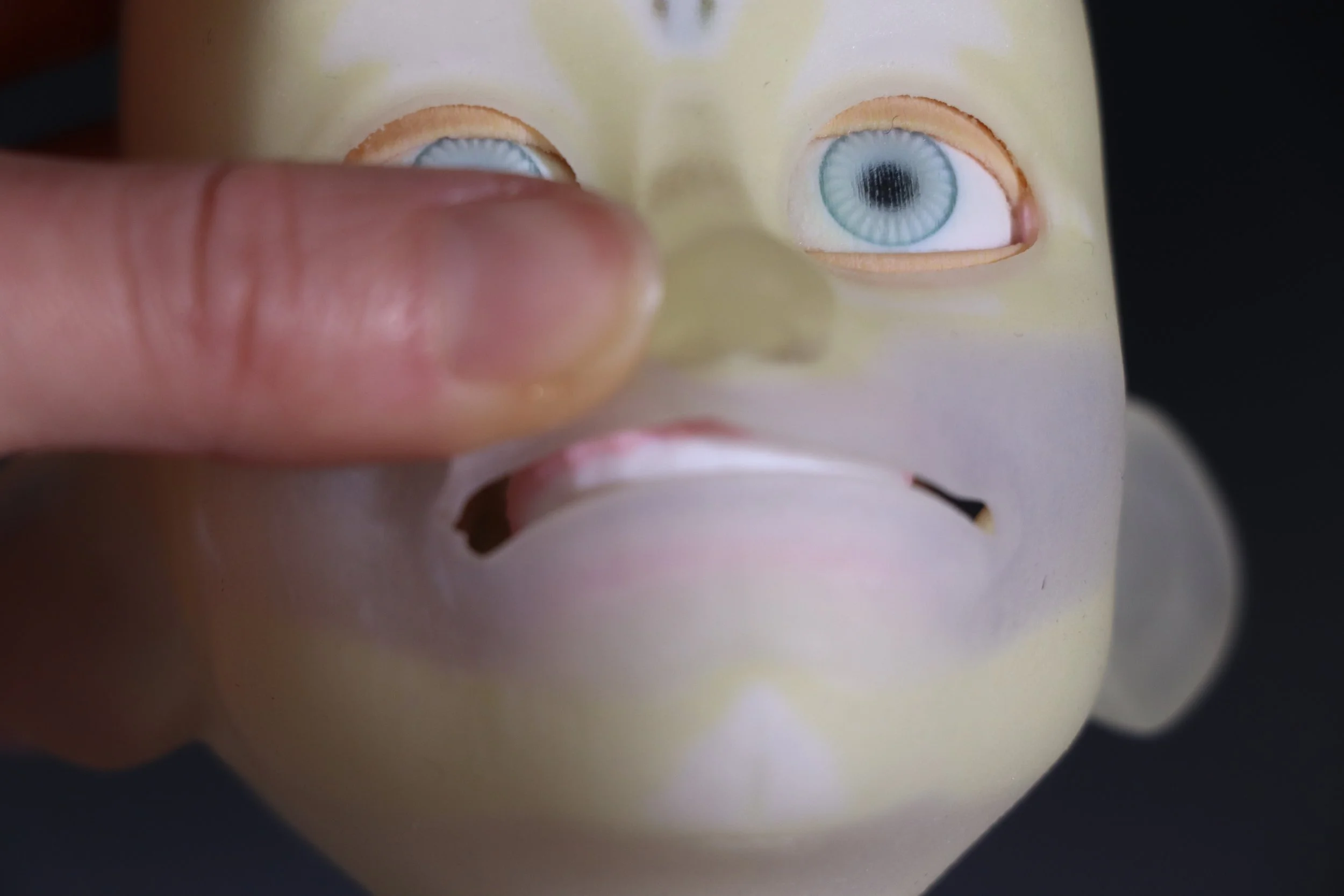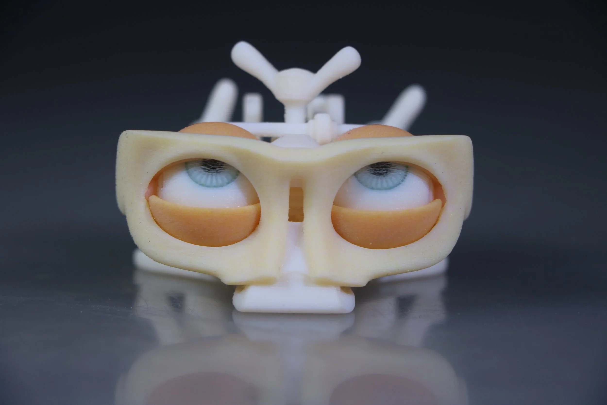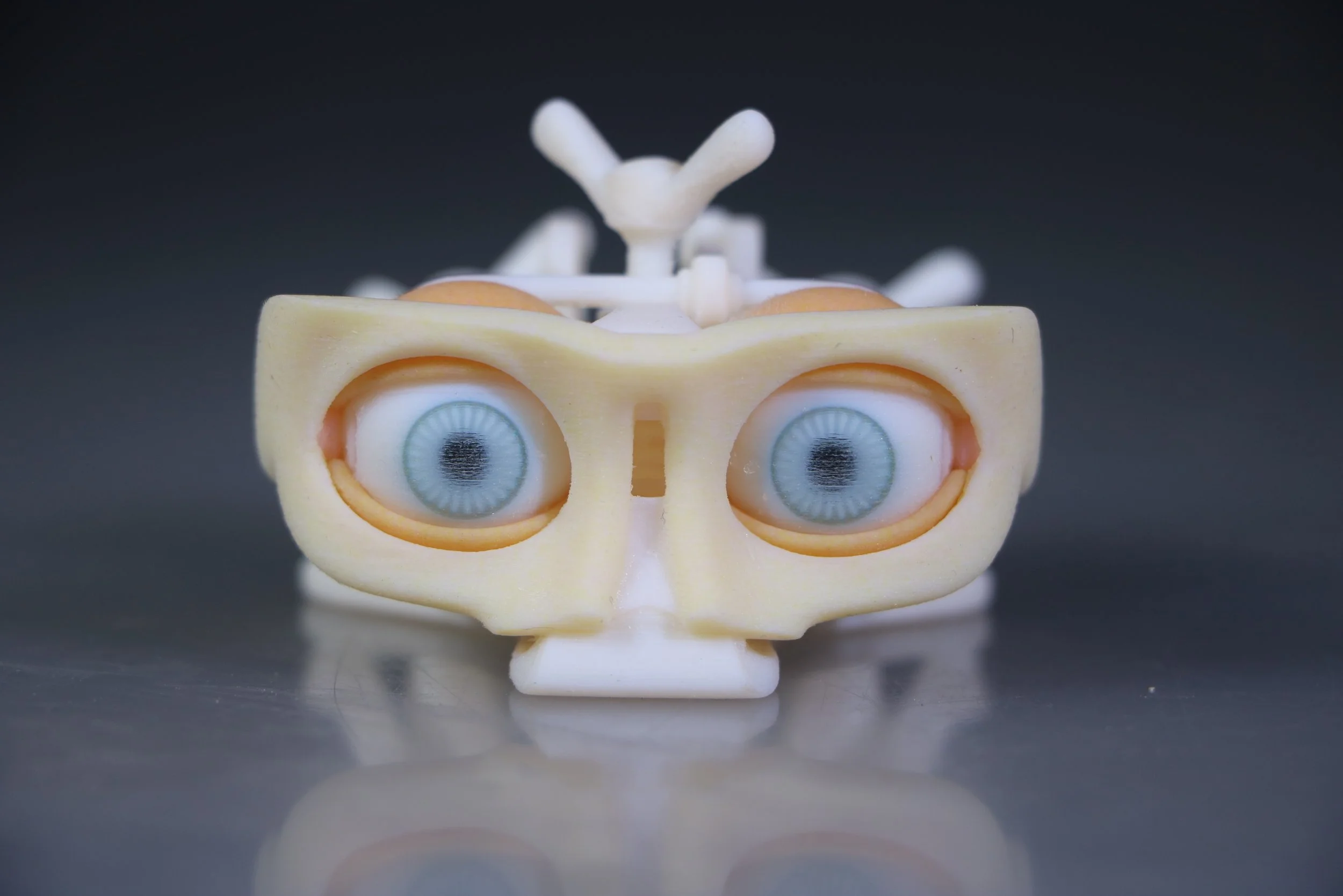 Can something as complex as a mechanically posed Stop-Motion animation puppet head, with variable colour, and part density (flexible face) be 3D printed in a single file without any form of assembly? … Can a single 3D print be brought to life?